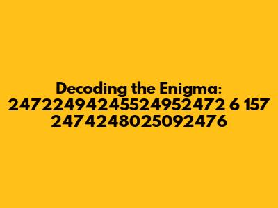 In conclusion, the sequence 24722494245524952472 6 157 2474248025092476 presents a fascinating puzzle. Without additional context, pinpointing its exact meaning remains a challenge, but by systematically analyzing its components, considering potential interpretations, and leveraging external resources, we can move closer to understanding its purpose. The key takeaway here is that decoding any unknown sequence requires a combination of analytical skills, contextual awareness, and resourcefulness. By breaking down the sequence into smaller parts, looking for patterns and relationships, and considering the possible meanings of each part, we can start to unravel its mystery. Remember that the context in which the sequence appears is crucial. Where did you find the sequence? What other information was present alongside it? Knowing the source and surrounding data can significantly narrow down the possibilities and help you make informed guesses about its meaning. Don't be afraid to experiment with different decoding techniques and to seek help from external resources and experts. There are many online tools and communities that can provide valuable insights and assistance. In the end, even if we can't definitively decode the sequence, the process of trying to understand it can be a valuable learning experience. It can help us develop our analytical skills, our problem-solving abilities, and our understanding of how data is structured and encoded. So, embrace the mystery and enjoy the challenge of decoding the unknown.